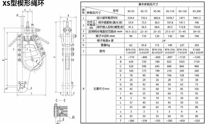 楔形繩環基本參數及尺寸